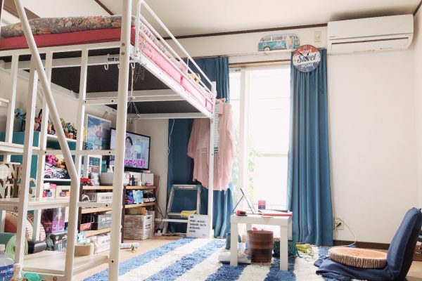 ・部屋のこだわりは、ロフトベッドを使ってなるべく広く使えるようにしています。好きな色のものを置いて、リラックスできる空間になるようにしています☕