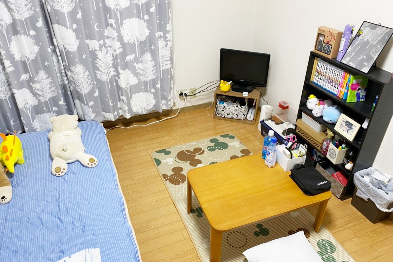 ・部屋のこだわりは、ロフトベッドを使ってなるべく広く使えるようにしています。好きな色のものを置いて、リラックスできる空間になるようにしています☕